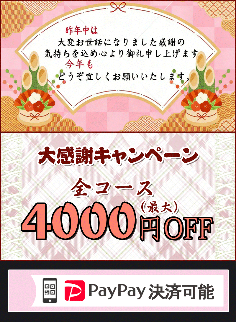 2025-12-31 マッサージ技術+おもてなし心+高い美意識を併せ持つ厳選されたセラピストが貴様の体調・お好みに応じて究極の癒しマッサージを提供させていただきます。個室の空間で全てを忘れセラピストのリズムに身を任せ貴様自身を取り戻してください疲れた体を癒しながらストレスの発散をし、健やかな状態を保ちます。 |